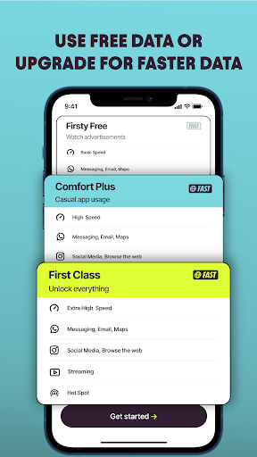 اسم التطبيق هو **Firsty: Global Mobile Network**.