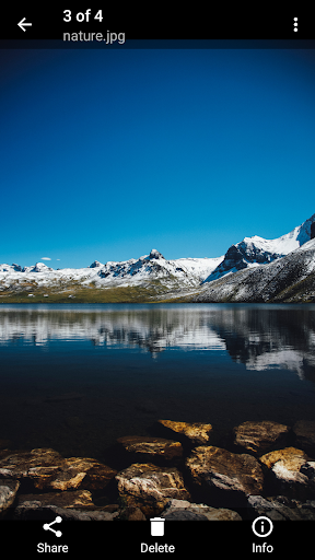 يتيح التطبيق معاينة وتشغيل الصور والفيديو مباشرة دون الحاجة للخروج منه أو تحميل تطبيقات خارجية. كما يعرض لك معلومات مفصلة مثل: